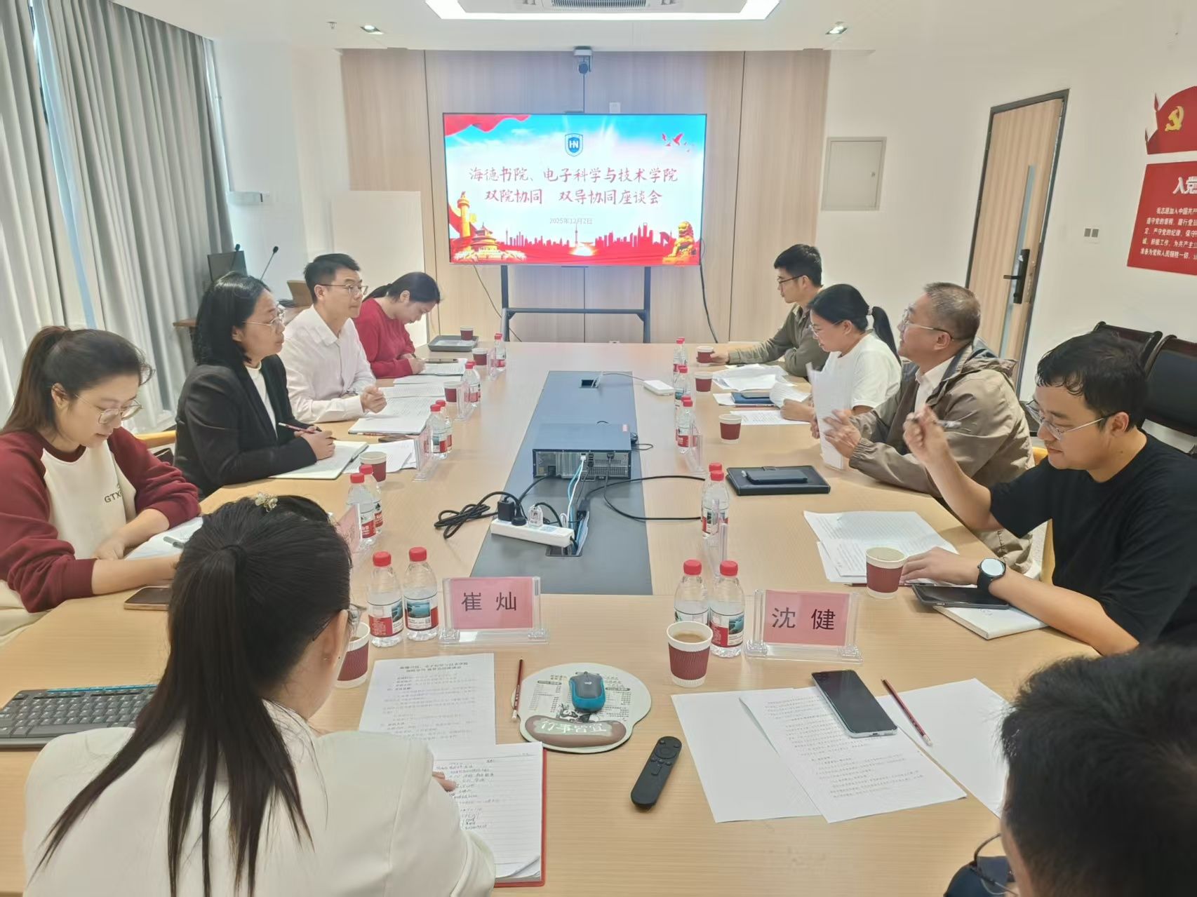 12月2日下午,海德书院与pg游戏电子模拟器双院协同、双导协同座谈会在pg游戏电子模拟器507会议室举行。海德书院党委书记韩胜丁、党委副书记崔建兵,pg游戏电子模拟器党总支书记林华、副院长李娜出席会议。会议由林华主持。