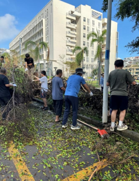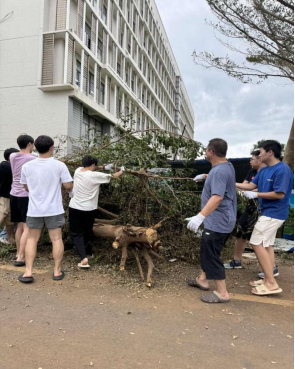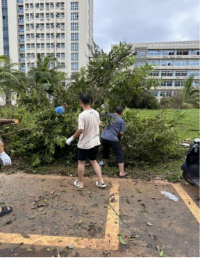 为了尽快恢复校园道路,开展正常教学秩序,学院积极响应学校号召,9月9日至13日,林华带领学院领导班子、全体党员、教师及研究生们共出动150余人次,清理道路上倒伏的树木、残枝、落叶、指示牌等,期间还与信息与通信工程学院、南海海洋资源利用国家重点实验室的师生们通力协作,团结一心,共克时艰。经过连续几天的努力,新国重大楼至海韵西路及周边已基本恢复,为师生们的正常学习生活提供了有力保障。